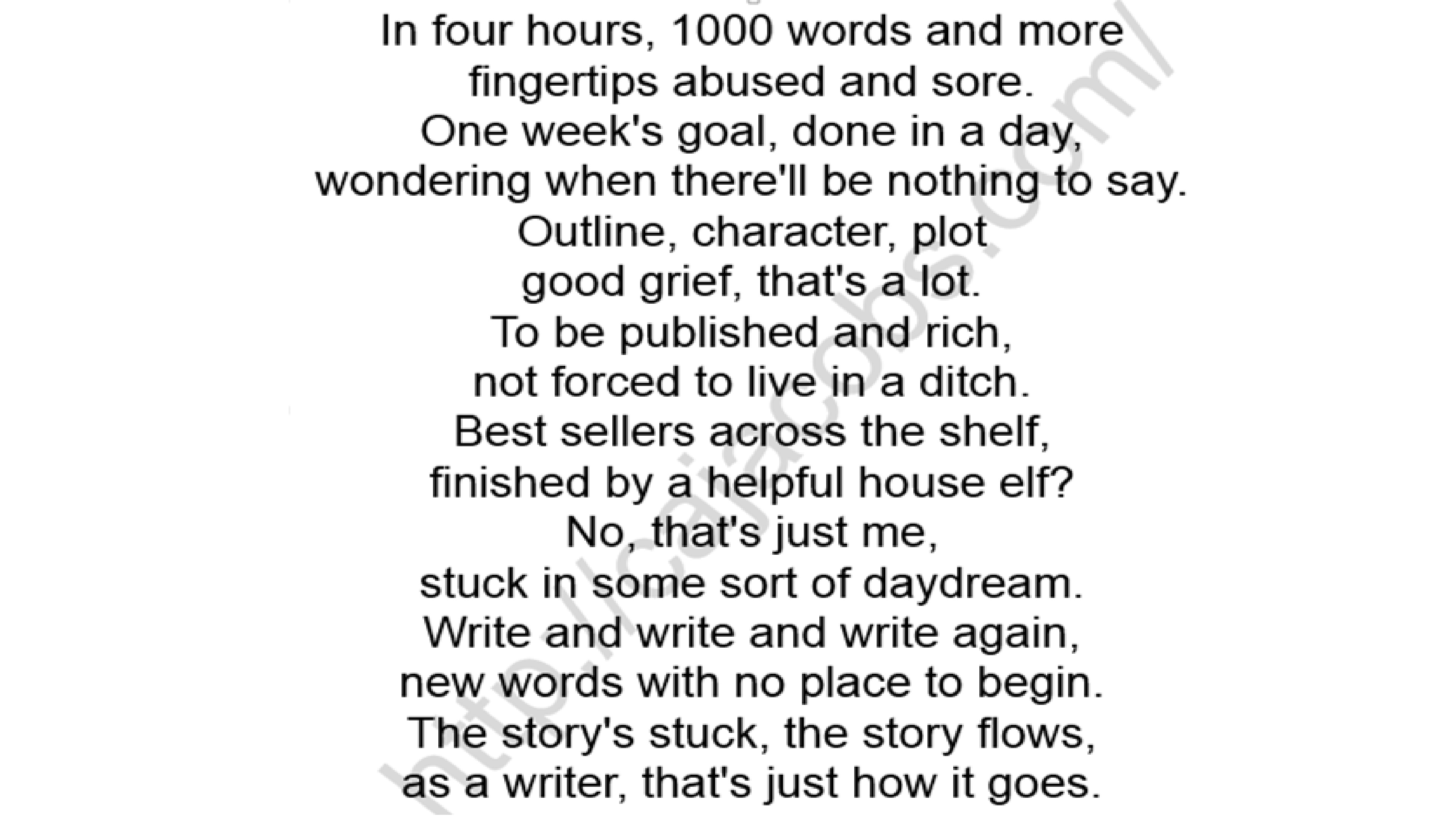 Here’s something I dug up from July 2012. It’s apparently some of my entertaining poetry about being a writer. I’m hoping someday to get some of my poetry published, but for now, maybe I’ll just keep posting these fun ones in the hopes that I’ll someday be famous enough for someone to want to publish my “real” poems, especially Nerd Girls! 🙂